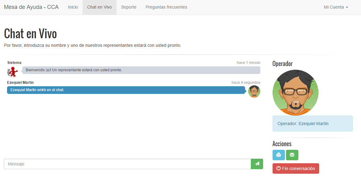Por este medio podrá quitarse todas las dudas que tenga y/o reportar errores para que luego el operador pueda crear tickets de soporte y resolver los conflictos existentes.