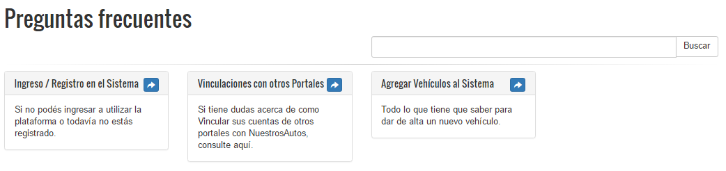 Aquí aparecerán las preguntas frecuentes disponibles por el momento. Para ingresar a una pregunta debe hacer click en la flecha azul y blanca.
